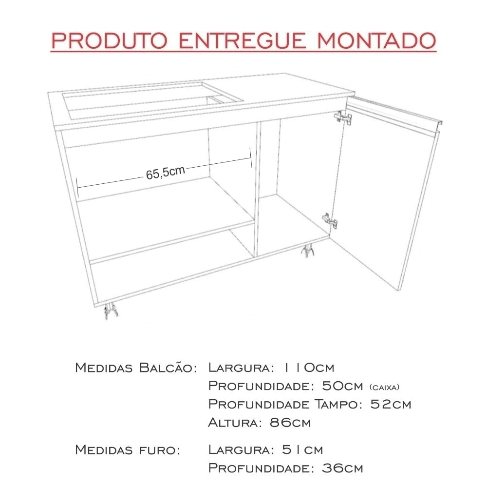 - Material do Balcão : 100% MDF BP (formica impermeável) de 15mm